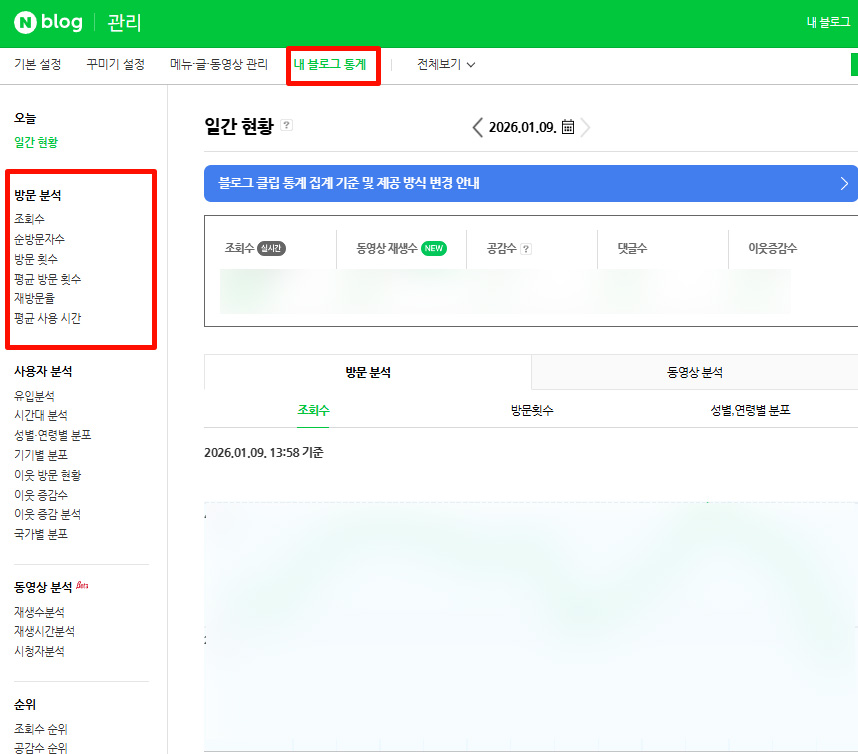 내 블로그 통계 화면으로 이동하기
